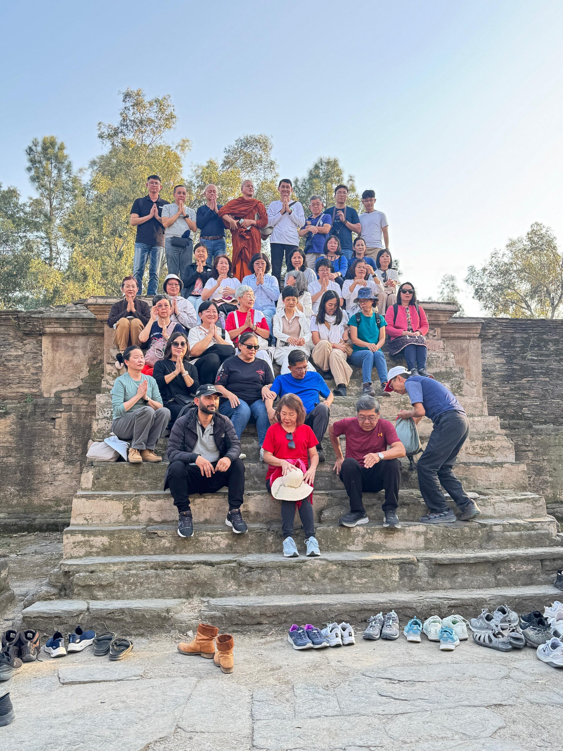 遗址之一,据传由阿育王在公元前 3 世纪建造。佛塔周围环绕着许多小佛塔和僧侣