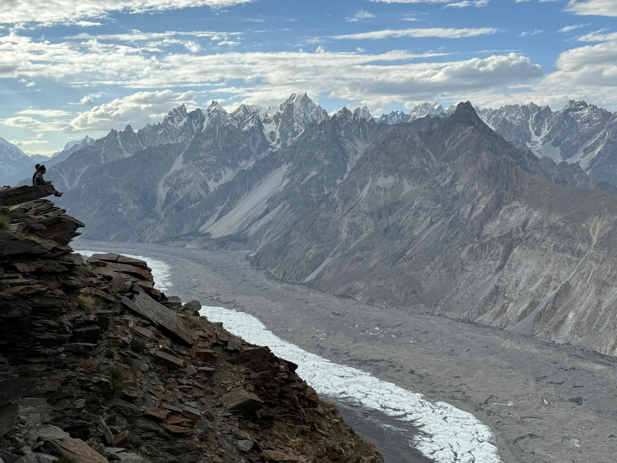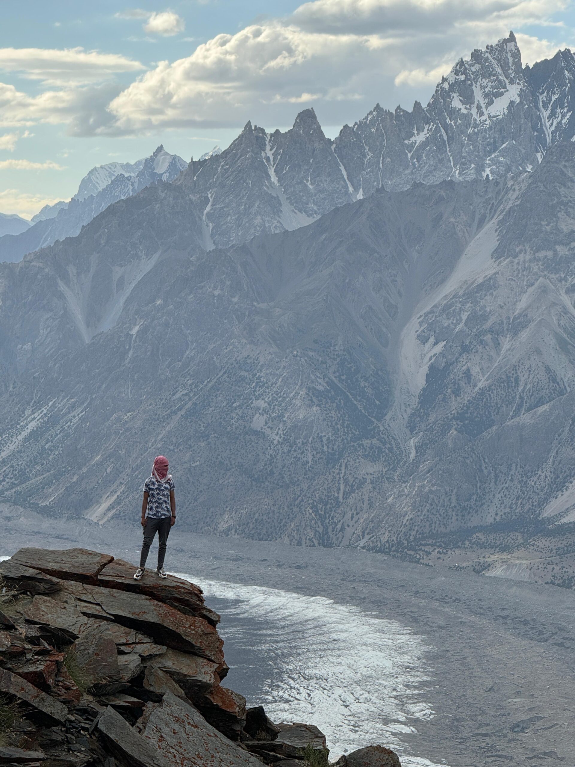 Follow the trail to Passu via crossing the glacier to Yunzben and then drive to Gulmit. Overnight camping
