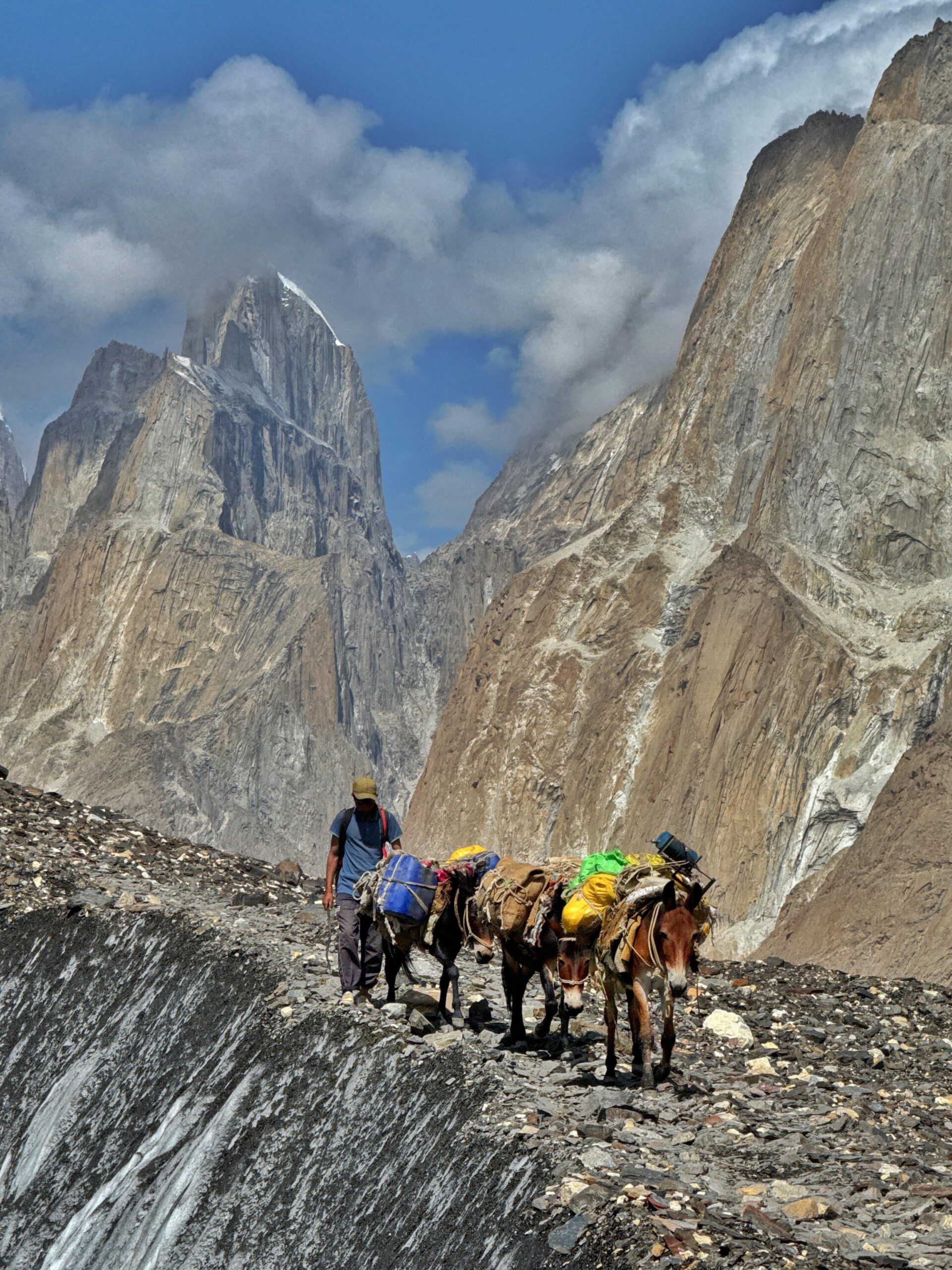 The first rule of trekking K2 Base Camp is to step to the wall side when you meet a mule, since otherwise you can be knocked off the edge.